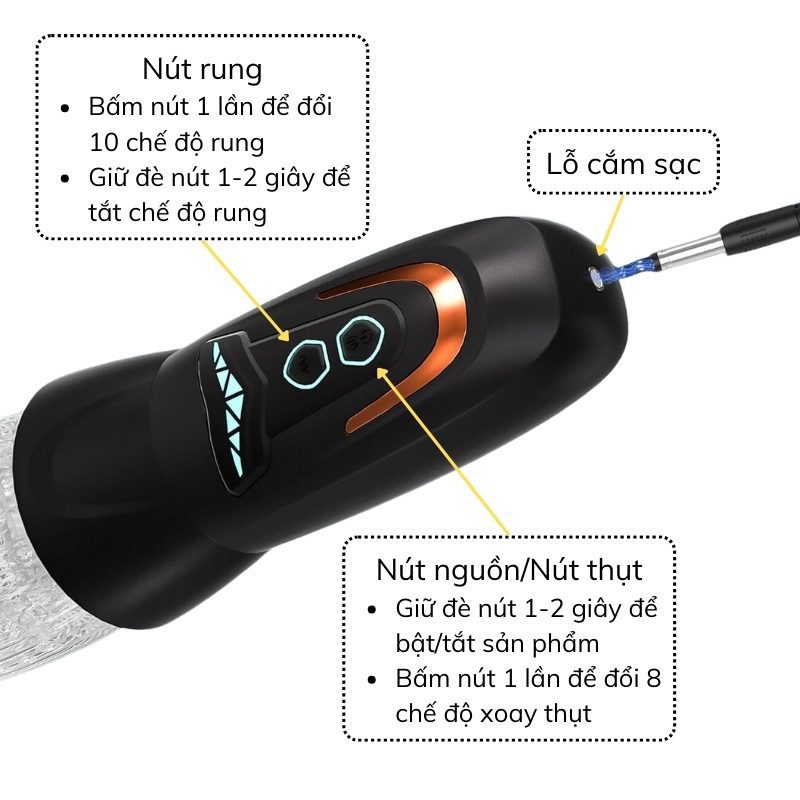 – Chức năng: Rung – Xoay – Thụt